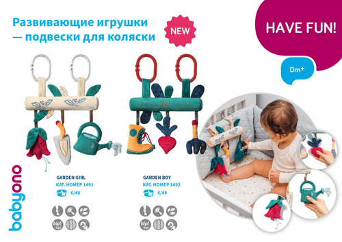Игрушка развивающая подвеска GARDEN GIRL от BabyOno. Коллекция play more разработана для стимуляции сенсорной и умственной активности ребенка. Учит малыша навыкам захвата, знакомству с формами и цветами.