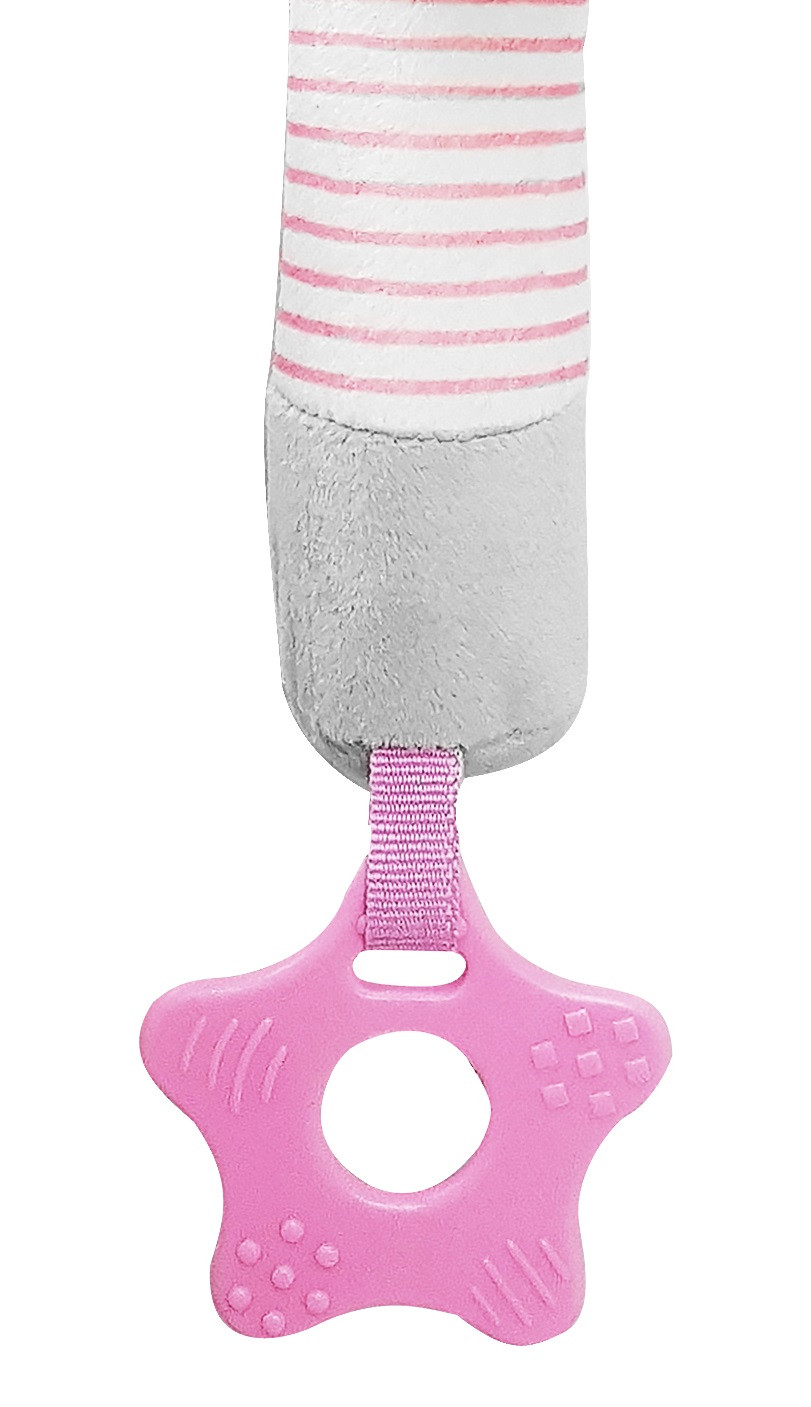 Благодаря своей легкости и эргономичной форме игрушка удобно ложится в маленькую ручку малыша. Мягконабивное тельце приятно на ощупь. При нажатии на него - игрушка пищит. В основании к игрушке прикреплен прорезыватель в виде звездочки. Рельефная поверхность поможет при прорезывании зубов. Все детали выполнены без острых углов и не могут навредить ребенку.