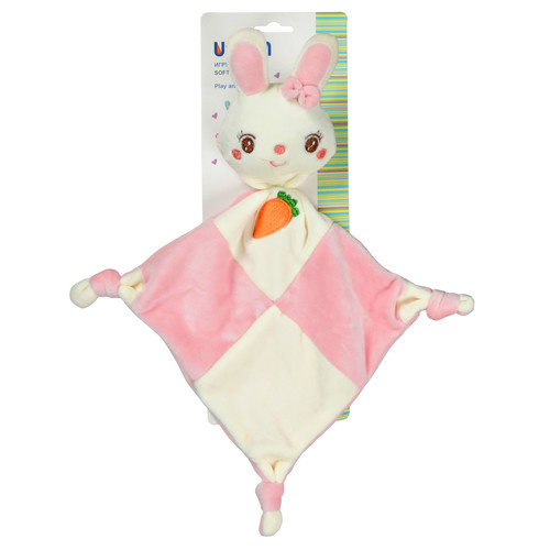 Мягкая игрушка-комфортер Кролик с морковкой (розовый)