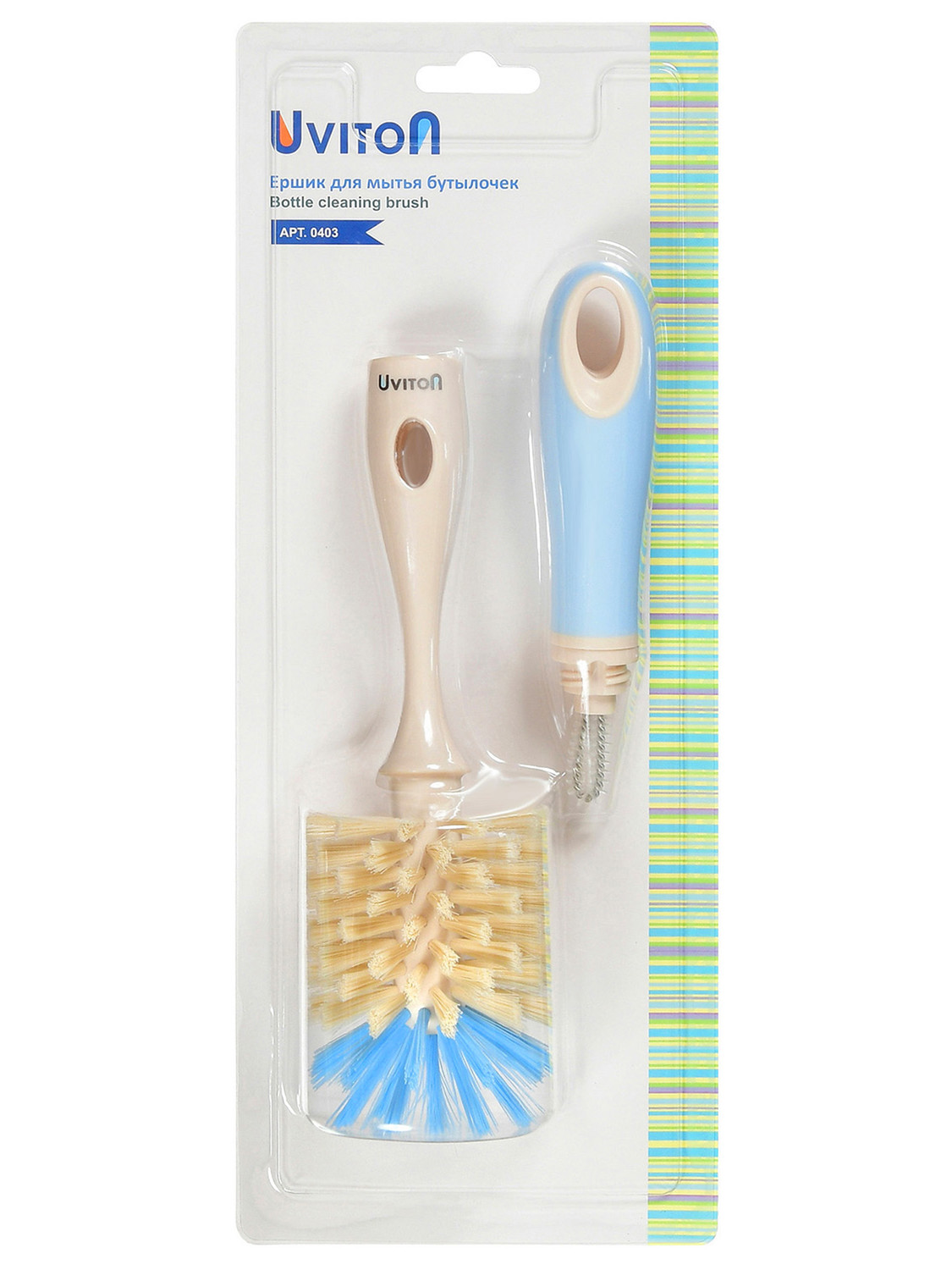 Ершик для мытья бутылочек 2 в 1 Premium от Uviton станет незаменимым помощником на кухне. Он специально разработан, чтобы безопасно и без царапин очищать бутылочки для кормления (большой ершик) и соски (маленький ершик) перед стерилизацией во время мытья. Ершик имеет мягкую и плотню щетину, что обеспечит более тщательную очистку. В ручке ершика скрыт маленький ёршик для очистки сосок и мелких предметов. Специальное нескользящее покрытие ручки обеспечат удобное удержание.