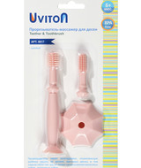 Массажер для десен-прорезыватель щеточка в виде зонтика от Uviton предназначен для комфортного и безопасного ухода за полостью рта ребенка. Такой набор подходит для массирования раздраженных десен и чистки первых зубов. В наборе имеется сменная насадка, что дает возможность выбирать размер и жесткость щетинок. Элементы имеют разную степень жесткости, мягкий массажер и более жесткий. Рельефная поверхность щеточек обеспечивает бережный массаж десен. Ограничитель защищает малыша от заглатывания и при необходимости легко снимается. Ребенок сам выбирает, какой элемент ему нравится грызть больше. Такой массажер легко удерживать маленьким ручкам.
