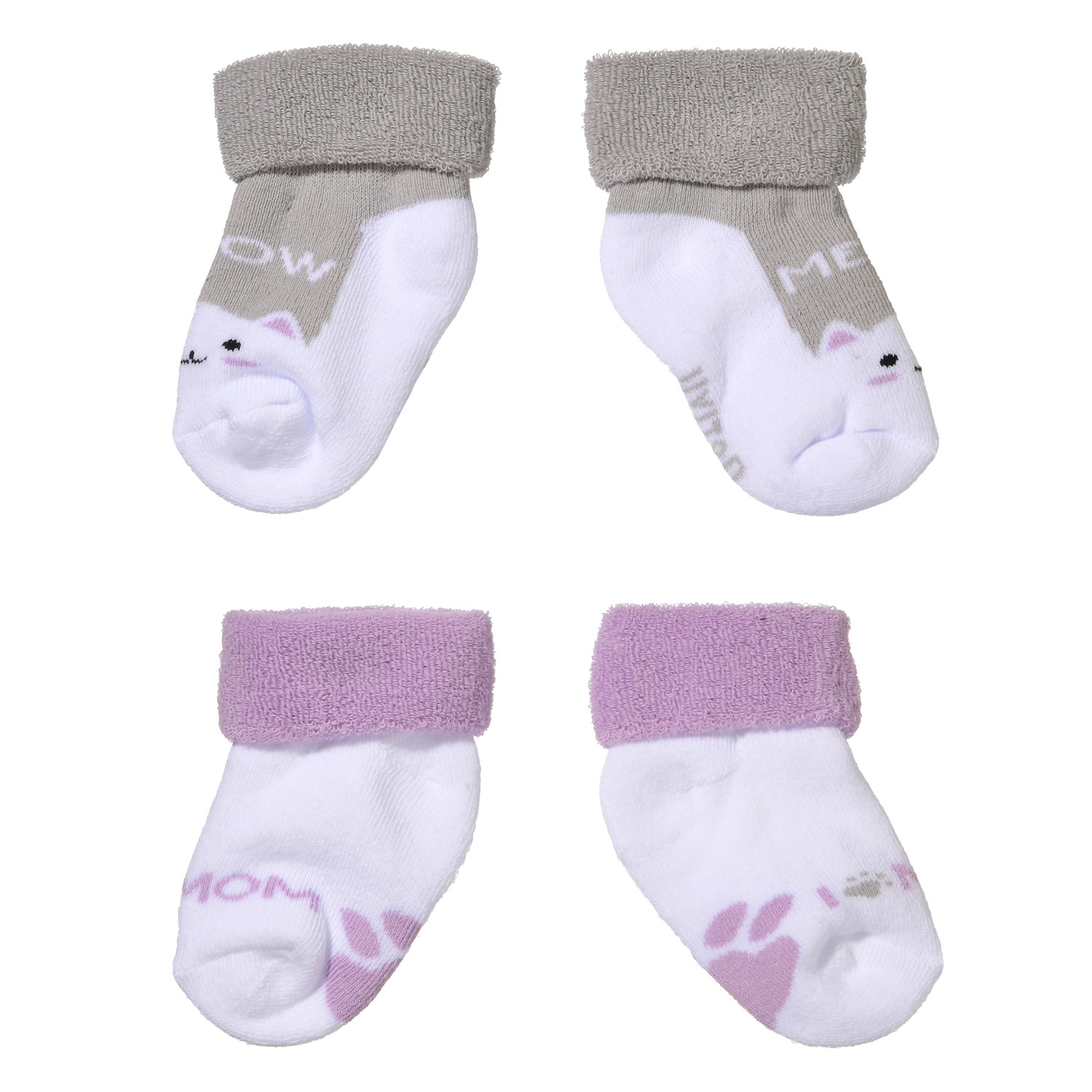 Набор носочков (2шт.) махра (Meow) сиреневый/серый 0-6мес.
