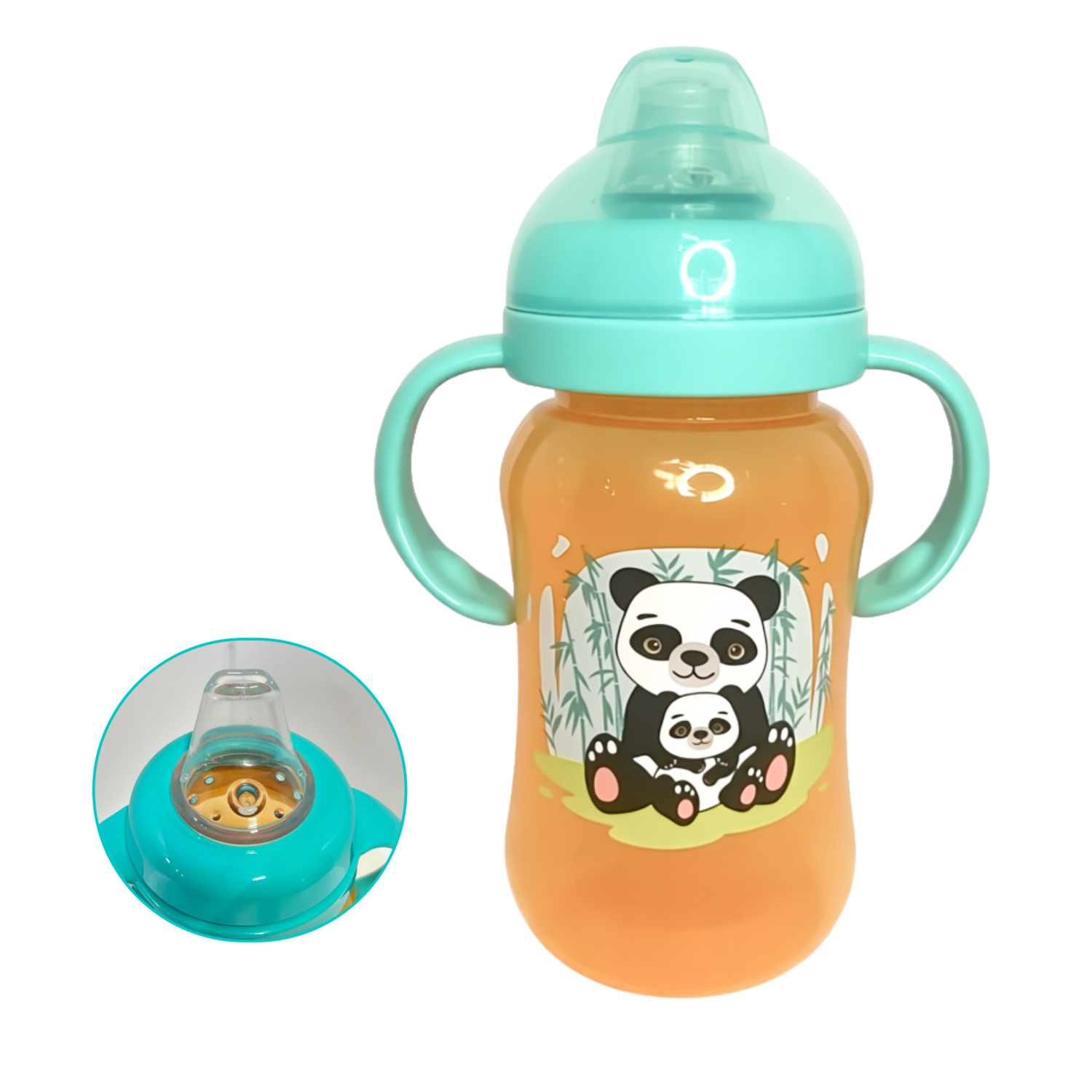 Поильник с силиконовым носиком 270мл. (оранжевый/панда)