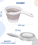 Ковш для купания оснащен удобной прорезиненной ручкой и не скользит в руке. Благодаря складной конструкции он не занимает много места.